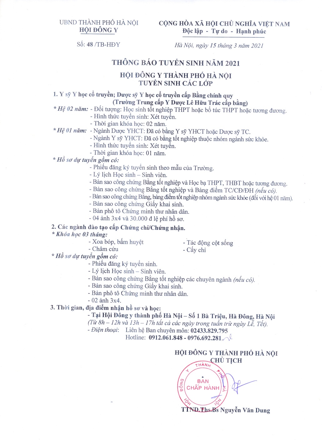 Thông báo tuyển sinh năm 2021